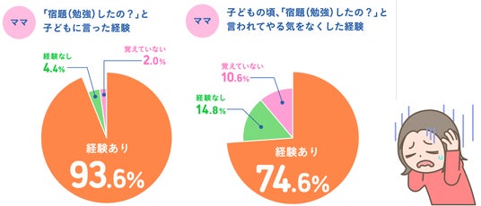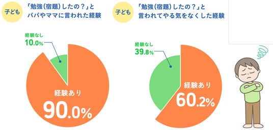 さらに、今の子どもたちも、実に9割がパパやママから「勉強(宿題)したの?」と言われ、その6割がやる気をなくした経験があるという結果となりました。