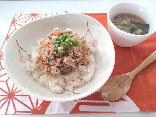 野菜たっぷり鯖そぼろ丼、鯖汁付き