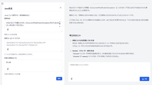 答えを直接提示するのではなく、ヒントや問いかけを通じて考える力を引き出す設計。