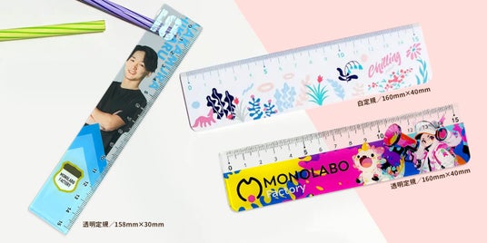 好きなイラストや写真をプリントできる「オリジナル定規」は、1個から注文が可能で、自分だけのデザインで日用品をパーソナライズできます。お気に入りの画像を使えば、学習や仕事の際にも楽しい気分になり、特別なギフトとしても最適です。また、企業ロゴやメッセージをプリントすればノベルティや販促品としてもご活用いただけます。学生やクリエイター、企業のプロモーションのみならず、学校関係やスポーツイベントでも多くご利用いただいており、新しいサイズ展開でさらにリーズナブルで使いやすくなりました。