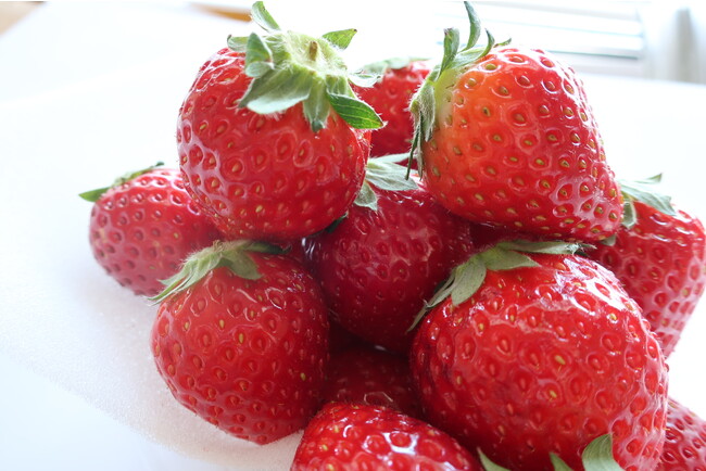 そんな中、30年ほど前にお客様から「いちごを作ってほしい」というご要望があり、新たな産品としていちごづくりに挑戦。初めてのいちご栽培は失敗もありましたが、農家として長年培ってきた経験を活かし、いちごづくりに最適な土づくりや光合成の活性化の研究を続け、ついに絶妙な甘さ、コクと香り、旨みをもつ特別ないちごが実現しました。また、農薬を極力使用しない栽培方法をとっており、小さなお子様にも安心して楽しんでいただけるのもこだわりです。