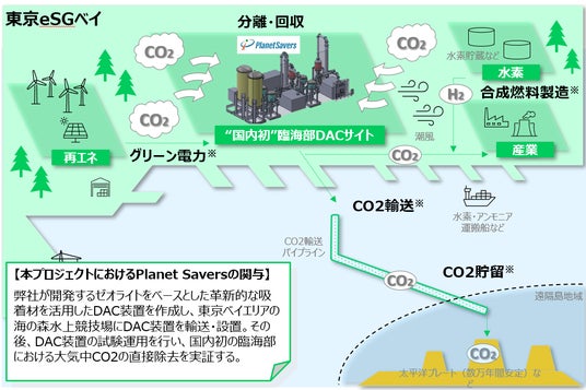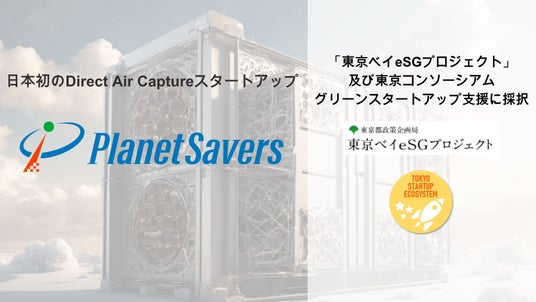 「気候変動を食い止め、次世代に美しい地球を残す」をミッションに掲げる東京大学発、日本初のDirect Air Capture(DAC:大気中CO2直接回収技術)スタートアップ、Planet Savers株式会社(本社:東京都渋谷区、代表取締役:池上京、以下「Planet Savers」)が、東京都の「東京ベイeSGプロジェクト」令和6年度先行プロジェクトにおける環境改善・資源循環分野に採択されました。