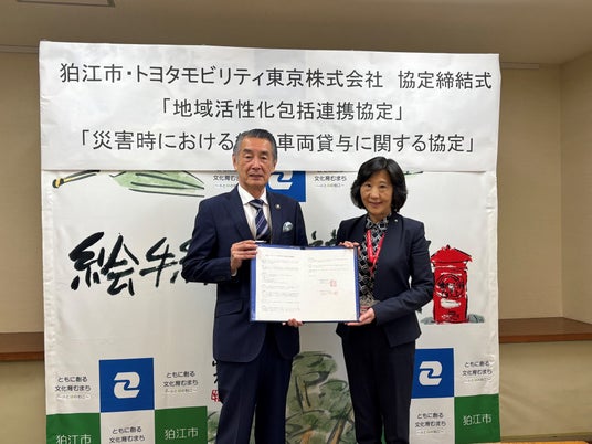 トヨタモビリティ東京株式会社 (社長 佐藤康彦)は、11 月 7 日(水)、狛江市(松原俊雄 市長)と地域活性化包括連携協定及び災害時給電車両貸与に関する協定を締結した。