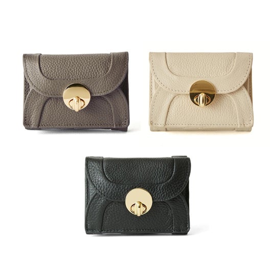 左上:グレーベージュ / 右上:エクリュ / 下:ブラック商品名:ニューラウンドフォルムミニウォレット