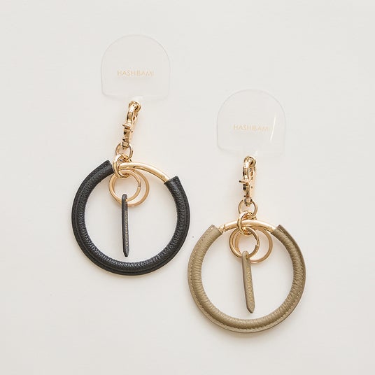 レザー付きのゴールドリングがまるでバングルのようなデザインの「ウィンドベルスマホハンドストラップ」。入荷後即完売し、再販希望のお声を多数いただいておりました!