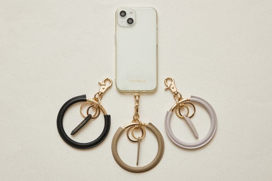 リングを手首に通して使うのはもちろん、スマホをポケットやバッグに入れたときにリング部分を外に出せば、チャームのように見えておしゃれ。