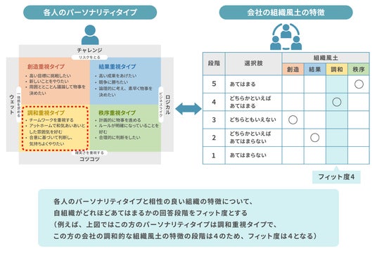 年収への満足度に関係するもうひとつの重要な要素が、「組織風土との相性(組織フィット)」です。図表6で示しているように、ここでいう組織フィット度とは、個人のパーソナリティタイプと職場の風土や価値観の一致度合いを指します。