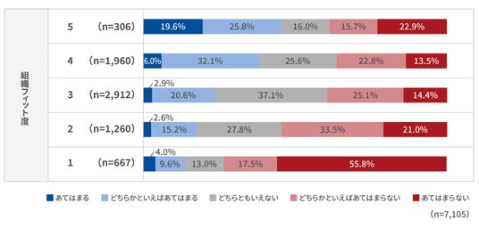 (図表7:組織フィット度別に「今の年収に満足している」の回答結果を比較)