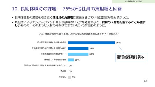 - そのため他社員への負担増が課題との回答が多数見られた