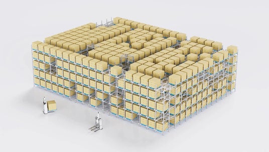 過酷環境対応の最新AMRと6方向搬送可能な高密度パレット保管システム