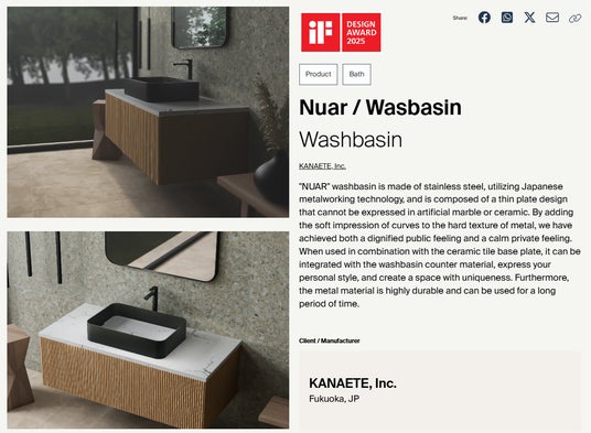 「あなたの暮らしに、非日常の空間を」をコンセプトに住宅設備機器を提案するブランド「クラフリー」を運営するカナエテ株式会社(福岡県福岡市、代表取締役社長:石田 徹)は、クラフリーオリジナル商品の洗面ボウル「ヌアール」にて iF DESIGN AWARD 2025 を受賞いたしました。