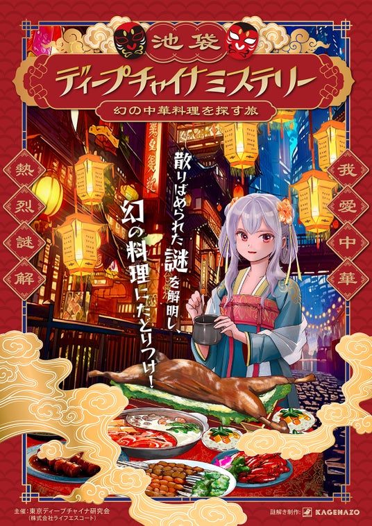 地域活性謎解きクリエイティブ集団『KAGENAZO』(運営:FUN SPIRITS株式会社 本社:東京都港区)は、街中周遊謎解きゲーム『池袋ディープチャイナミステリー ~幻の中華料理を探す旅~』を2024年8月12日(月)から池袋駅西口エリアで開催します。