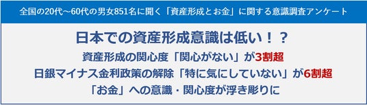 全国の20代~60代の男女851名に聞く「資産形成とお金」に関する意識調査アンケート