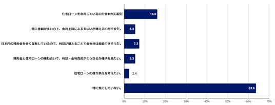 2024年3月に日本銀行が「マイナス金利政策」を解除し、金利を引き上げることを決めました。これについてどのように感じているか調査したところ、「特に気にしていない」が63.6%で圧倒的に1位でした。