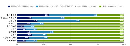■資産形成に関する用語は聞いたこともない? 「新NISA」の用語と内容が分からない24.7%。「iDeCo」は41% 10問中6問が「7割以上」が用語も内容もわからないと回答