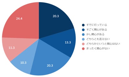 資産形成への関心について調査したところ、「すでに行っている」と回答したのは20.3%でした。反対に「どちらかというと関心はない」「まったく関心がない」の合計は35.7%に達しました。