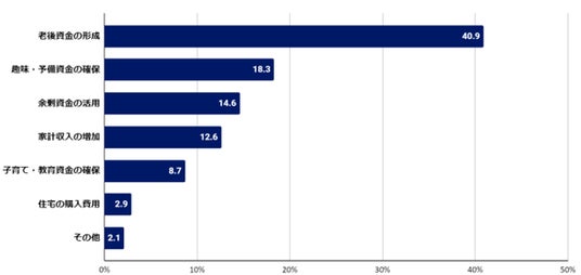 資産形成を「すでに行っている」「すごく関心がある」「少し関心がある」方に、資産形成を始めたい(関心がある)きっかけや資産を増やしたい動機を調査したところ、4割強が「老後資産の形成」と回答しました。