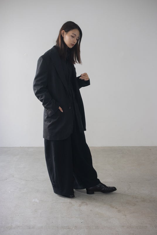 ブランドコンセプトとして、表情豊かな天然素材にこだわり、細部に至るまで職人技を活かしています。 生地には独特の風合いを持つ天然素材を採用し、縫製も細やかな運針で丁寧に仕上げています。 シルエットは着物にインスパイアされ、ミニマルなディテールや落ち着いた色合いが、日本の侘び寂びの美意識を体現しています。