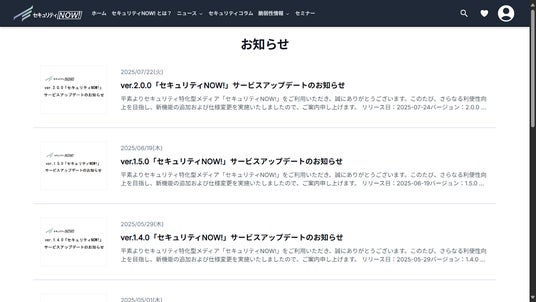 株式会社SMSデータテック(本社:東京都中央区、代表取締役社長:松原哲朗)は、セキュリティ特化型メディア「セキュリティNOW!」の最新版となるver.2.0.0を、2025年7月24日にリリースいたしましたので、ご案内申し上げます。本アップデートでは、製品紹介機能の実装や、「セミナー」ページの追加など、多数の新機能と改善を行いました。