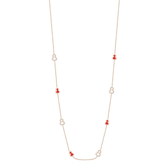 Wulu Mania コレクションは、世界の女性のために発表されたコレクションです。18Kローズゴールドの地金に、ダイヤモンドとレッドエナメルのWuluが交互に配され、18Kローズゴールドのロングネックレスとブレスレット、レッドのストリングブレスレットがラインナップしたコレクションは、すべての女性の幸せへの願いを込め、精巧にデザインされています。