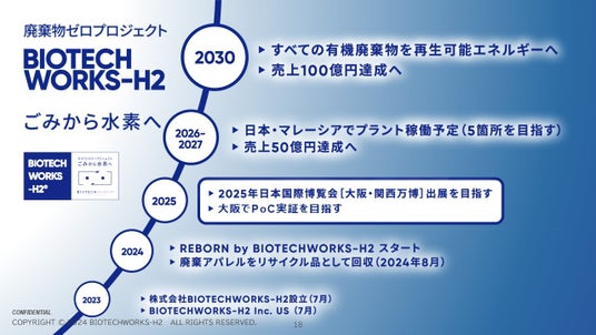 2025 年の日本とマレーシアでのプラント建設を見据え、2030 年までには「全てのゴミが資源になり、廃棄物がゼロになる」時代の構築を目指しています。