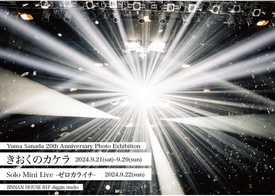 まず第1弾として、9月21日より個人写真展「Yuma Sanada 20th Anniversary Photo Exhibition-きおくのカケラ-」の開催が決定。