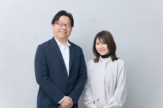 (左)創業者/取締役会長 角間実 (右)代表取締役 原田真緒