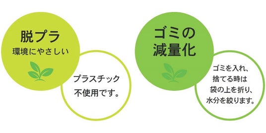 シンク内の場所をとらず後片付けも簡単で、環境に配慮しつつ家事の負担も減らせる便利グッズです。同カテゴリの製品はプラスチック素材を使用しているものが多い中、この「紙製水切りごみ袋」は脱プラスチックを推進するアイテムであり、環境配慮商品として各自治体での啓発グッズとしてもご採用いただいております。