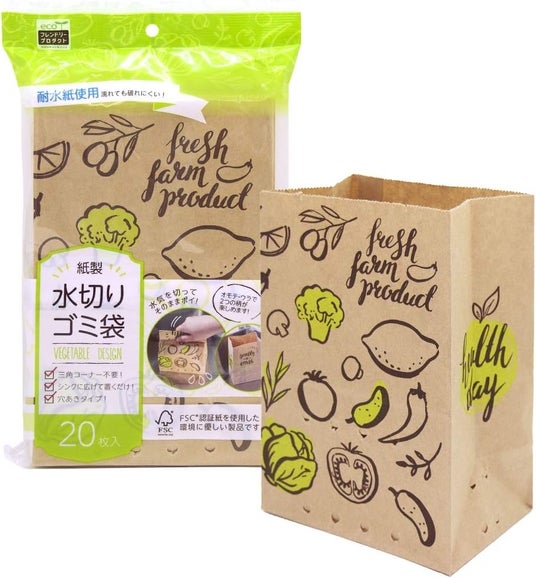 「紙製水切りゴミ袋 20枚 ベジタブル柄」《基本商品情報》