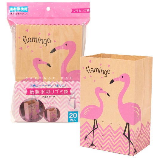 「紙製水切りゴミ袋 20枚 フラミンゴ柄」《基本商品情報》