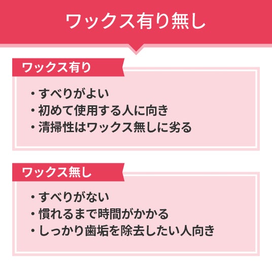 - ワックス有りで使いやすそうなのと、ミントフレーバーが魅力的だと思いました。(30代女性、使用歴:3ヶ月未満)
