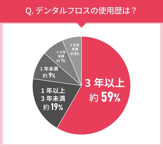 今回の回答者は3年以上使っている人が最も多い結果となりました。1年以上使っている人に至っては約78%。今回のアンケートの回答は、少なくとも1年間はデンタルフロスを使っている人から得られたものと言えるでしょう。