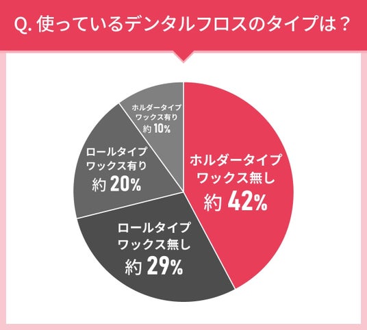 デンタルフロスに関して、ホルダータイプとロールタイプ、ともに人気がある一方で、ワックスの有無では無しを選ぶ人が全体の約72%いることがわかりました。