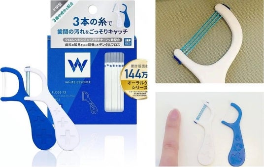 糸が3本に分かれているデンタルフロスは珍しいです。コンパクトサイズなので歯ブラシケースに収まりやすく、持ち歩き用に便利そうです。