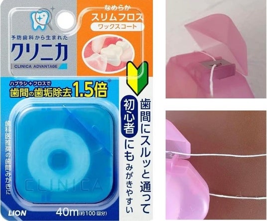 ワックスつきなので初心者の人も使いやすそうです。また、糸の断面が鋭いエッジのあるくさび状になっているため、歯垢をしっかりかき取ります。