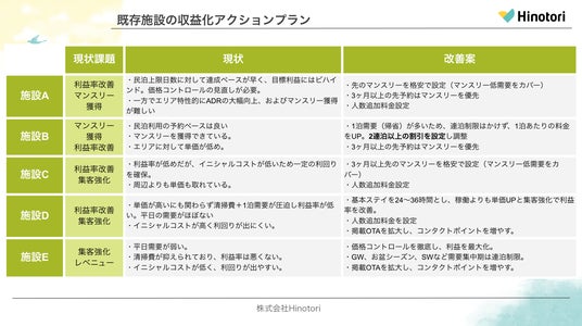 分析結果を元に個別に具体的なアクションを策定し、各施設の収益最大化を実現