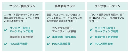 支援内容: コンセプト設計、マーケティング戦略策定、収支計画策定、Webサイト/SNS構築・運用、広告運用、システム導入支援、定例ミーティングによるPDCA改善など