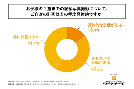 1歳未満の子どもを持つ親の約6割が、子どもの1歳までの記念写真撮影について、何らかの計画がある