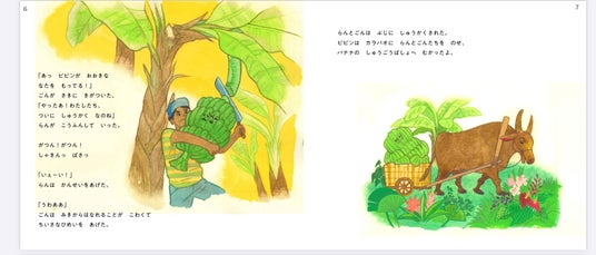 現在制作中の絵本『バナナのらんとごん』制作中の1ページ(完成版ではありません)