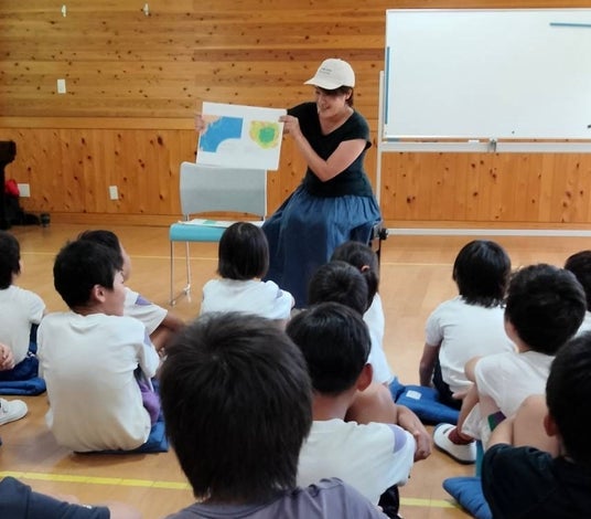 地域の小学校で住民が読み聞かせを行う活動に参加、絵本の試作版を読み聞かせ
