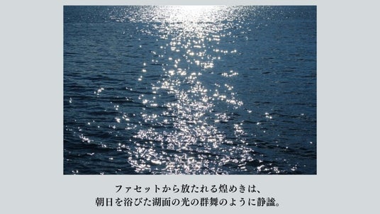 ファセットから放たれる煌めきは、朝日を浴びた湖面の光の群舞のように静謐。