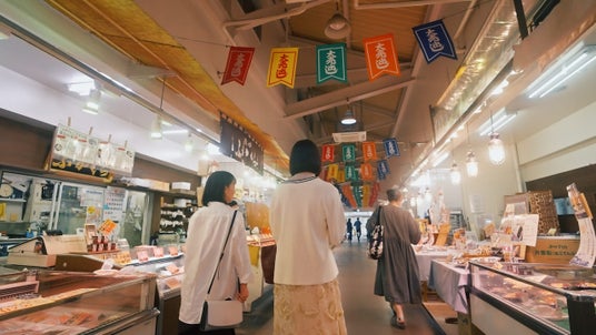 「新鮮で美味しい魚をもっと気軽に食してほしい」そんな思いを持った仲卸業者たちが集まっている清水魚市場「河岸の市」。市内に限らず県内外からも多くの人が訪れ、地元清水港の台所として仲卸業者が直接販売する日本初の施設として親しまれています。活気に満ち溢れた店内では、仲卸業者がプロの目で選んだ、新鮮な魚介類や海産物、野菜、お茶、みかん、惣菜や、新鮮な海鮮が味わえる食事処まで、