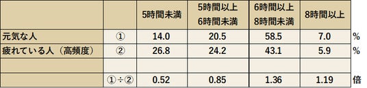 2. 【疲労度との相関】「元気な人」ほど睡眠時間を確保している