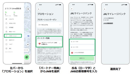 - - Limeを利用するたびに、JALのマイルが100円につき1マイルたまります。