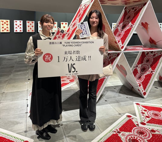 JR大阪駅前のグラングリーン大阪内「VS.(ヴイエス)」にて、11月1日より開催中の吉田ユニ展“PLAING CARDS” が2024年11月14日に来場者1万人を突破しました。本展は、カルチュア・コンビニエンス・クラブ株式会社(CCCアートラボ)、ガスアズインターフェイス株式会社、およびVS.共同事業体(株式会社トータルメディア開発研究所・株式会社野村卓也事務所)の3団体共催で、開始からおよそ1週間半での達成となりました。