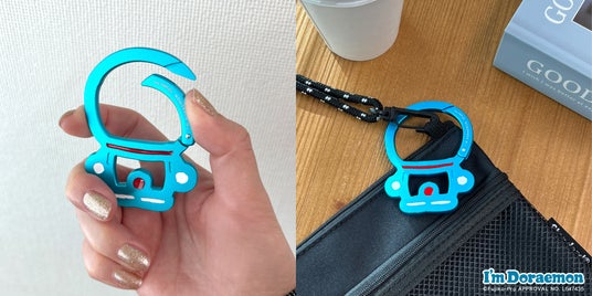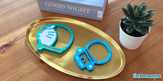 ドラえもんの横顔と後ろ姿をモチーフにしたフラワーリングオリジナルデザインのカラビナ!