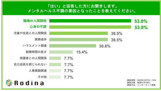 ~一方、メンタルヘルス不調の要因は職場・生徒との人間関係が影響~