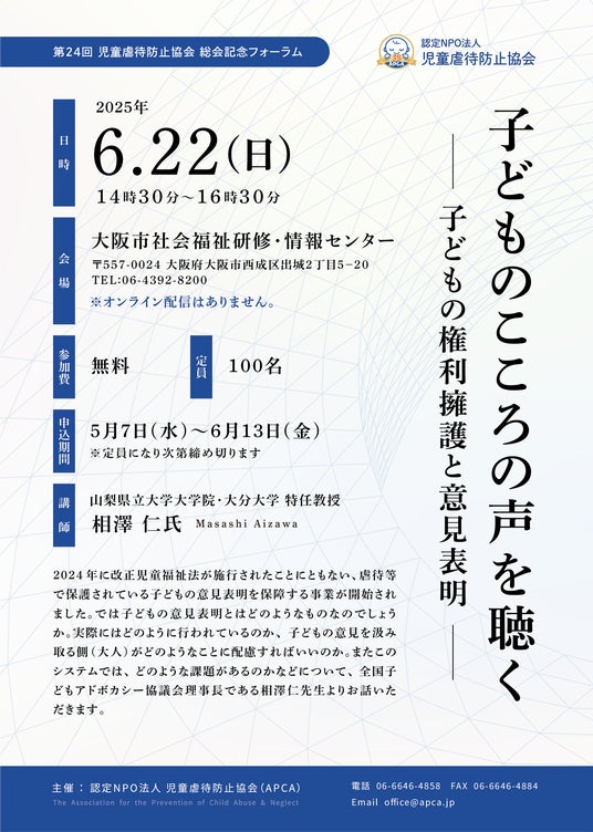 第24回 児童虐待防止協会 総会記念フォーラム