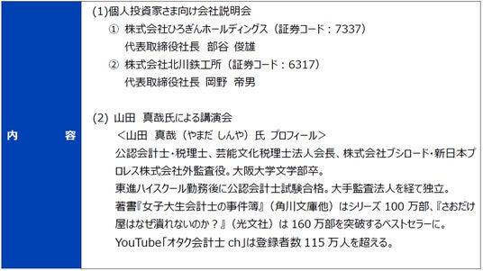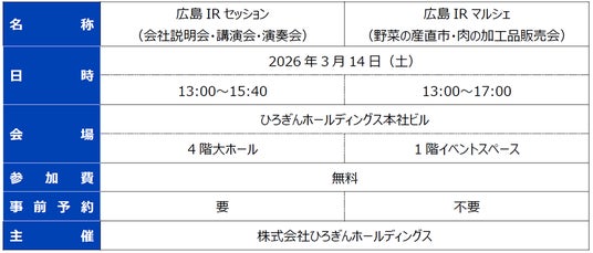 株式会社ひろぎんホールディングス(社長 部谷 俊雄)では、IRセッションおよびIRマルシェを開催いたしますので、下記のとおりお知らせいたします。