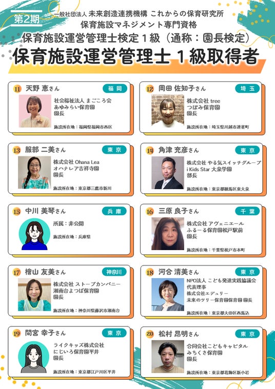 今回登録された保育施設運営管理士リスト